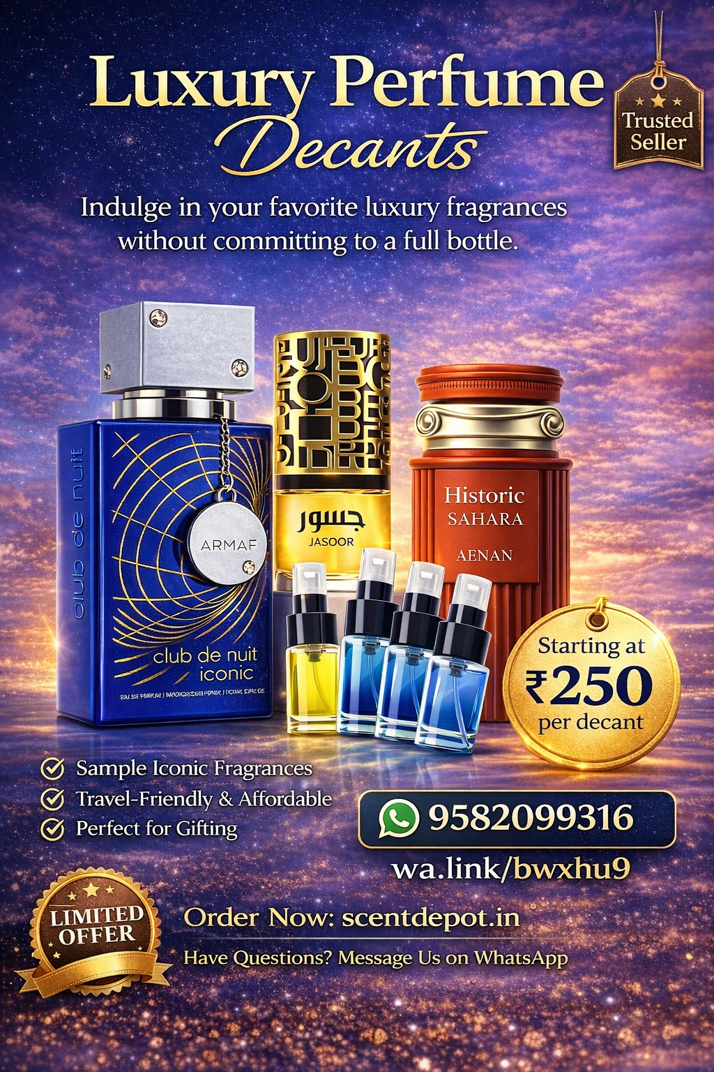 Experience authentic luxury fragrances in premium decants. Trusted by perfume lovers who value quality and elegance.
